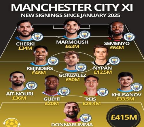 随着塞门约和格伊的先后到来,短短的1年时间内,曼城在54岁的主帅瓜迪奥拉的授意下,已经斥巨资4.45亿镑买了多达12位强援。