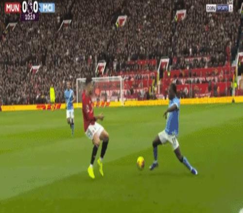 第10分钟,罗德里分球左路,多库变向突破,达洛特踹到对手的膝盖,但裁判手下留情,仅出示黄牌警告,曼联逃过红牌。